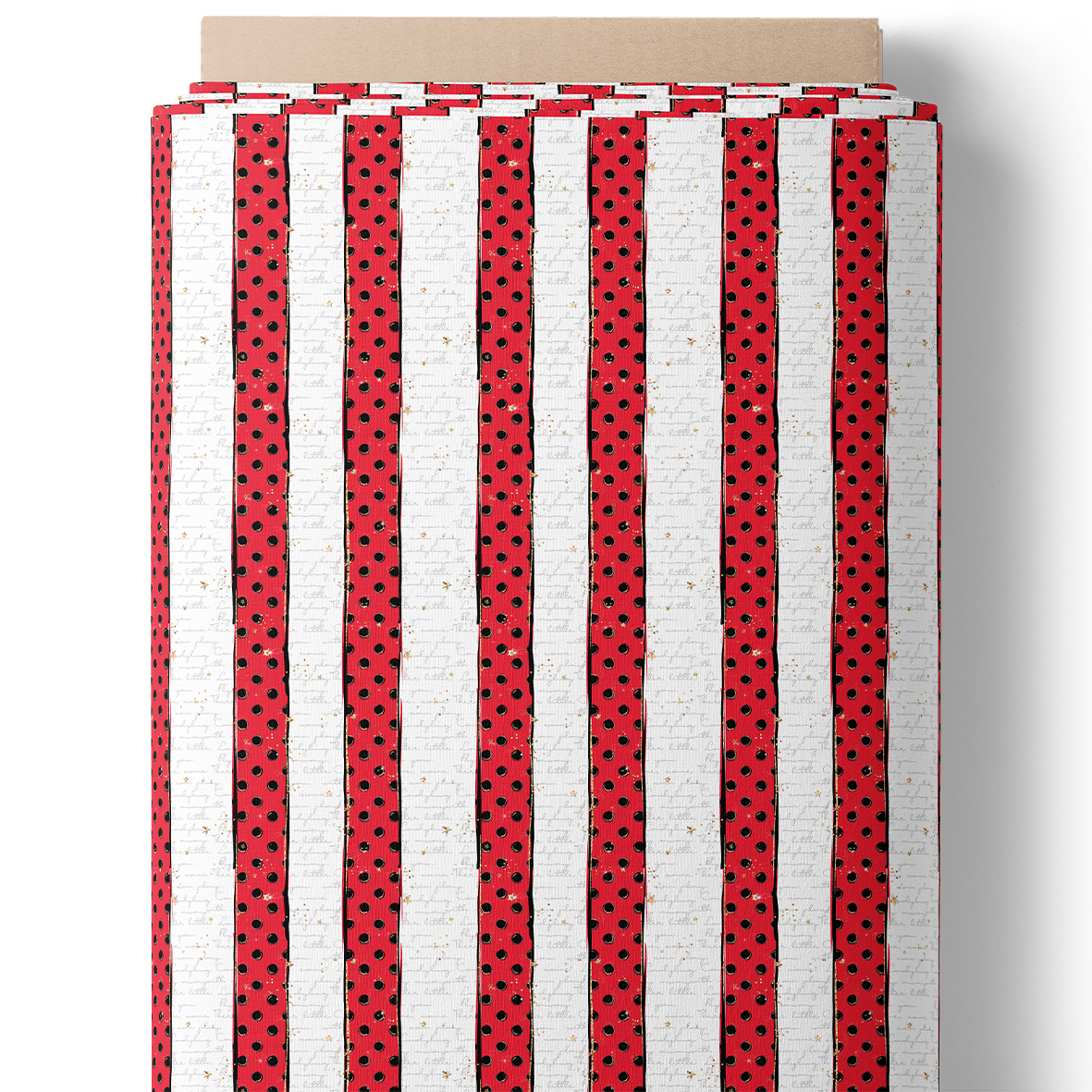 Un motif audacieux mêlant rayures verticales et pois contrastés. L’équilibre entre le rouge vif, le noir profond et les touches dorées lui confère un esprit rétro et chic, parfait pour des créations pleines de caractère.